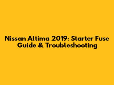 Nissan Altima 2019: Starter Fuse Guide & Troubleshooting