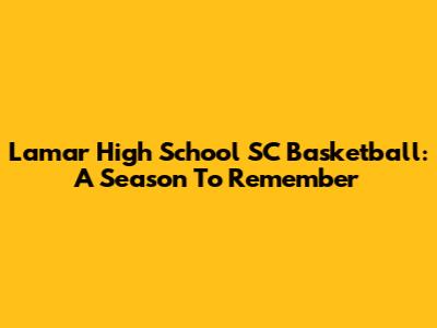 Lamar High School SC Basketball: A Season To Remember