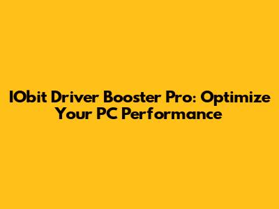 IObit Driver Booster Pro: Optimize Your PC Performance