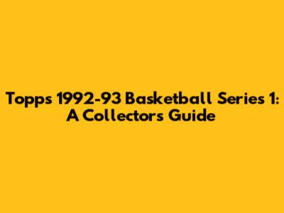 Topps 1992-93 Basketball Series 1: A Collector's Guide