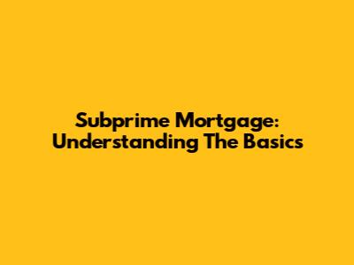 Subprime Mortgage: Understanding The Basics