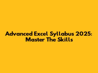 Advanced Excel Syllabus 2025: Master The Skills