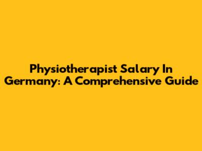 Physiotherapist Salary In Germany: A Comprehensive Guide