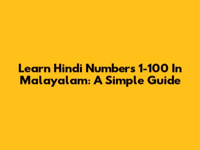 Learn Hindi Numbers 1-100 In Malayalam: A Simple Guide