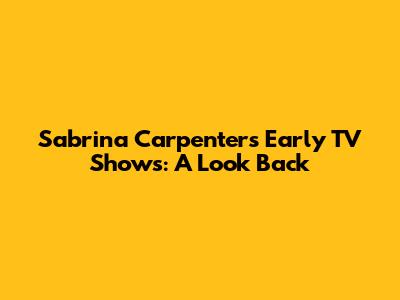 Sabrina Carpenter's Early TV Shows: A Look Back