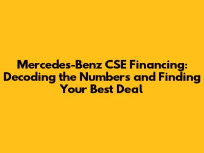 Hey there, car enthusiasts! Are you eyeing a sleek Mercedes-Benz CSE and trying to figure out the financing options? You're in the right place! Navigating the world of car loans, interest rates, and monthly payments can feel like deciphering a complex code. But don't worry, we're going to break down everything you need to know about Mercedes-Benz CSE financing, so you can confidently drive off in your dream car. This guide will focus on the numbers, the options, and how to find a financing plan that perfectly fits your budget and lifestyle. Get ready to unlock the secrets to securing your Mercedes-Benz CSE finance! Let's dive in, shall we?