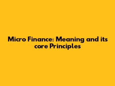 Core Principles Underpinning Microfinance
