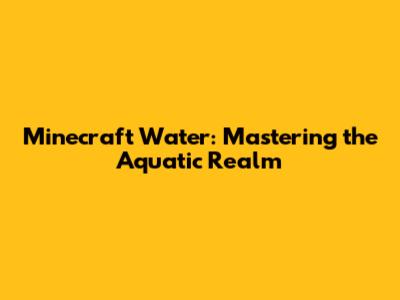 Understanding the Basics of Minecraft Water