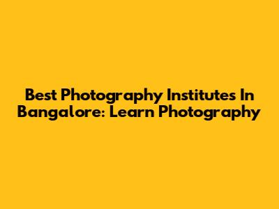 Best Photography Institutes In Bangalore: Learn Photography