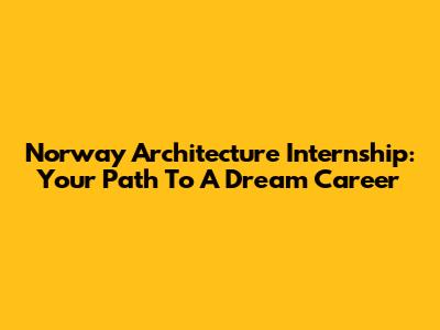 Norway Architecture Internship: Your Path To A Dream Career