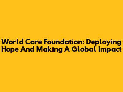 World Care Foundation: Deploying Hope And Making A Global Impact