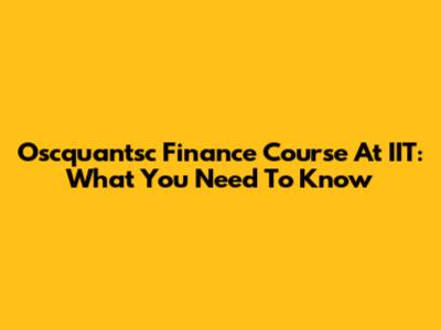 Oscquantsc Finance Course At IIT: What You Need To Know