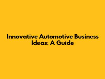 Innovative Automotive Business Ideas: A Guide