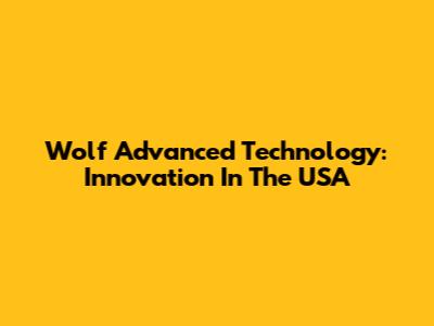 Wolf Advanced Technology: Innovation In The USA