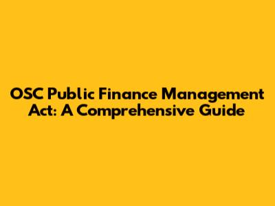 Understanding the Basics: What is the OSC Public Finance Management Act?