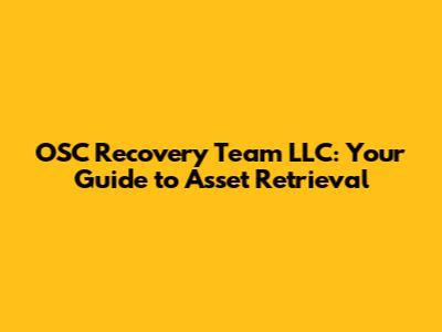 Hey guys! Ever found yourself in a tricky situation where you need to recover something valuable? Maybe it's a vehicle, some equipment, or other assets that have gone missing or been unlawfully taken. That's where OSC Recovery Team LLC comes into play. They're the pros in the field of asset recovery, and in this guide, we'll dive deep into what they do, how they work, and why they might be the perfect team for you. Getting your stuff back can be a stressful time, but with the right team, it doesn't have to be. Let's get started, shall we?