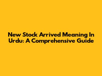New Stock Arrived Meaning In Urdu: A Comprehensive Guide