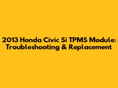 2013 Honda Civic Si TPMS Module: Troubleshooting & Replacement