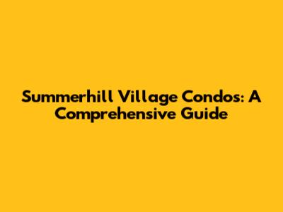 Summerhill Village Condos: A Comprehensive Guide