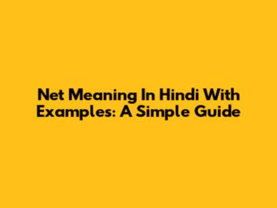 Net Meaning In Hindi With Examples: A Simple Guide