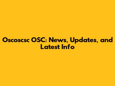 What Exactly Is Oscoscsc OSC?