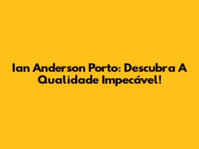 Ian Anderson Porto: Descubra A Qualidade Impecável!