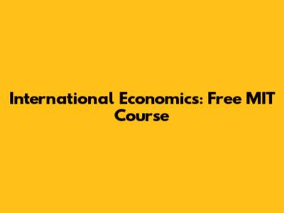 International Economics: Free MIT Course