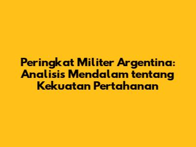 Peringkat militer Argentina adalah topik yang menarik dan sering menjadi perbincangan. Sebagai salah satu negara terbesar di Amerika Selatan, Argentina memiliki sejarah panjang dalam hal militer, dari keterlibatan dalam konflik regional hingga peran dalam menjaga perdamaian dunia. Dalam artikel ini, kita akan membahas secara mendalam tentang peringkat militer Argentina, faktor-faktor yang mempengaruhinya, dan bagaimana posisinya dibandingkan dengan negara-negara lain di dunia.