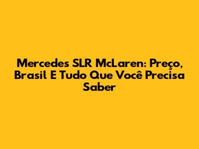 Mercedes SLR McLaren: Preço, Brasil E Tudo Que Você Precisa Saber