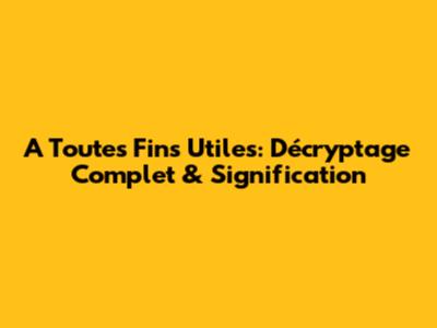 A Toutes Fins Utiles: Décryptage Complet & Signification