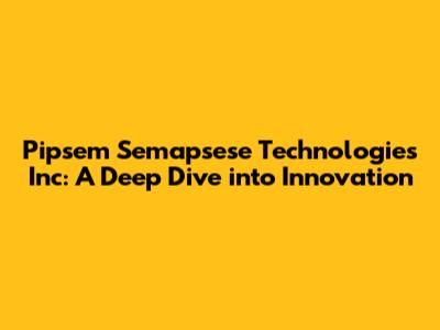 Hey everyone, let's dive into the fascinating world of Pipsem Semapsese Technologies Inc., a company that's making some serious waves in the tech industry. We're going to explore what they do, how they do it, and why you should care. Buckle up, because we're about to embark on a journey through the exciting landscape of Pipsem Semapsese's innovations!