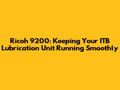 Ricoh 9200: Keeping Your ITB Lubrication Unit Running Smoothly