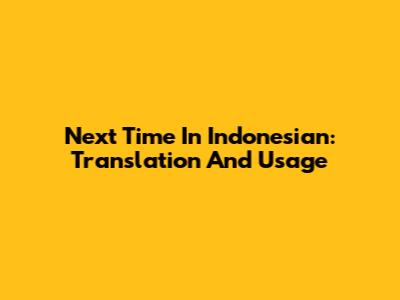 Next Time In Indonesian: Translation And Usage