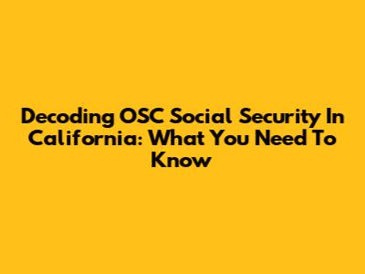 Decoding OSC Social Security In California: What You Need To Know