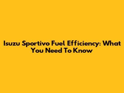 Isuzu Sportivo Fuel Efficiency: What You Need To Know