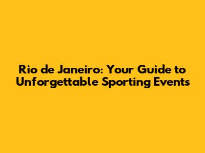 Rio De Janeiro: Your Guide To Unforgettable Sporting Events