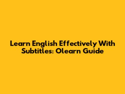 Learn English Effectively With Subtitles: Olearn Guide