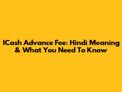 ICash Advance Fee: Hindi Meaning & What You Need To Know