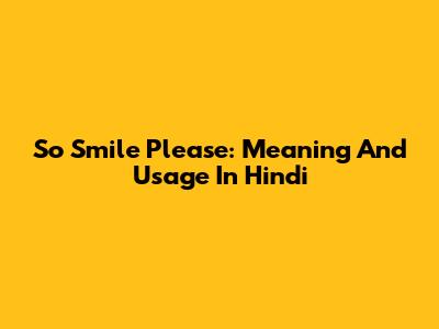 So Smile Please: Meaning And Usage In Hindi