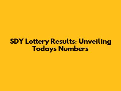 Hey everyone! Are you curious about the SDY lottery results today? You're in the right place! We're going to dive deep into what the SDY lottery is, how it works, and most importantly, what numbers were drawn today. Whether you're a seasoned player or just starting out, this guide will provide you with all the information you need. Let's get started and unravel the mystery of the SDY result today.