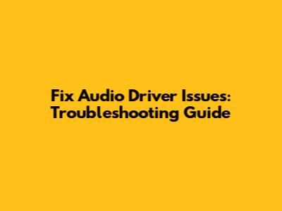 Fix Audio Driver Issues: Troubleshooting Guide