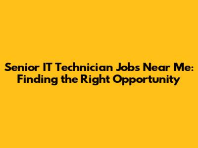 Hey guys! Are you on the hunt for senior IT technician jobs near me? Well, you're in the right place! Navigating the job market can be tough, especially when you're looking for a role that matches your experience and skills. As a seasoned IT professional, finding the perfect senior IT technician position involves more than just a quick search. It requires a strategic approach, understanding the local job landscape, and knowing where to look.