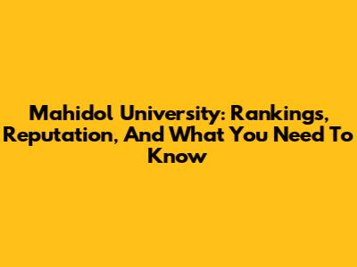 Mahidol University: Rankings, Reputation, And What You Need To Know