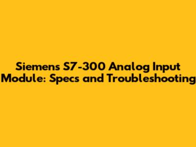 Key Specifications of S7-300 Analog Input Modules