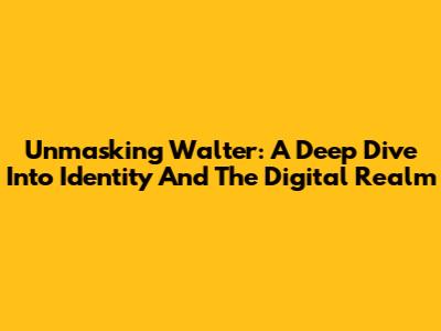 Unmasking Walter: A Deep Dive Into Identity And The Digital Realm