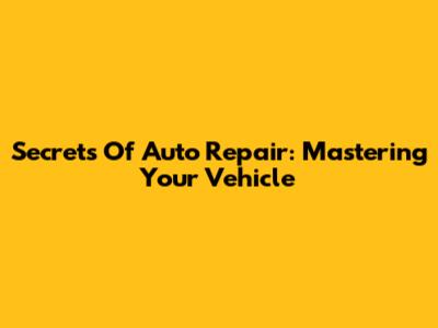 Secrets Of Auto Repair: Mastering Your Vehicle