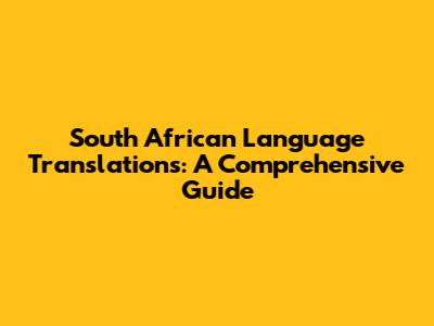 South African Language Translations: A Comprehensive Guide