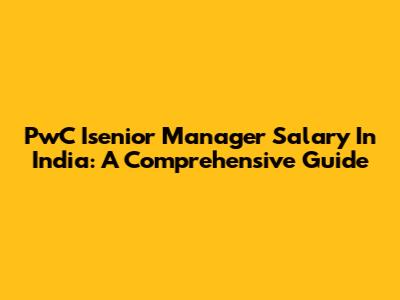 PwC Isenior Manager Salary In India: A Comprehensive Guide