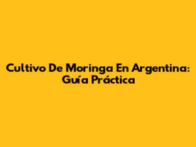 Cultivo De Moringa En Argentina: Guía Práctica