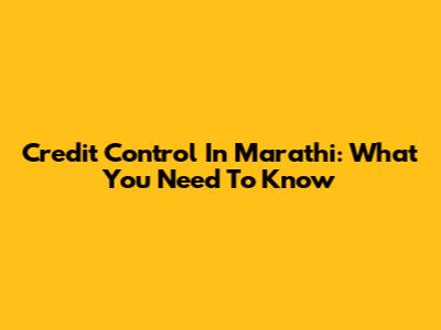 Credit Control In Marathi: What You Need To Know